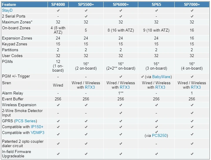 قابلیتهای سری اسپکترا SP به راحتی گسترش مییابد. این گسترش شامل ویژگیهای جدیدی مانند StayD، افزایش تعداد زونها تا ۳۲ و PGMs تا ۱۶ است. همچنین، این سری از ماژولهای ارتباطی (سری PCS)، تلفنکننده صوتی خط ثابت (VDMP3) و ماژول اینترنتی (IP150+) پشتیبانی میکند.